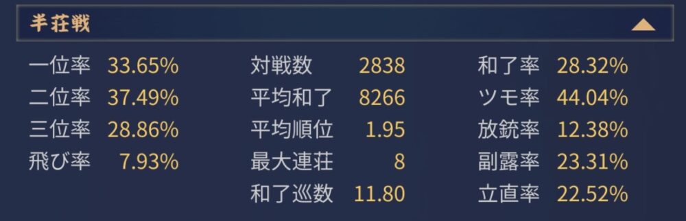 雀魂(じゃんたま)の放銃率・和了率・副露率など、“成績の見方”と“目安(理想値)”を載せていて、筆者のアカウントも実際に載せて解説していますから参考にしていってください。